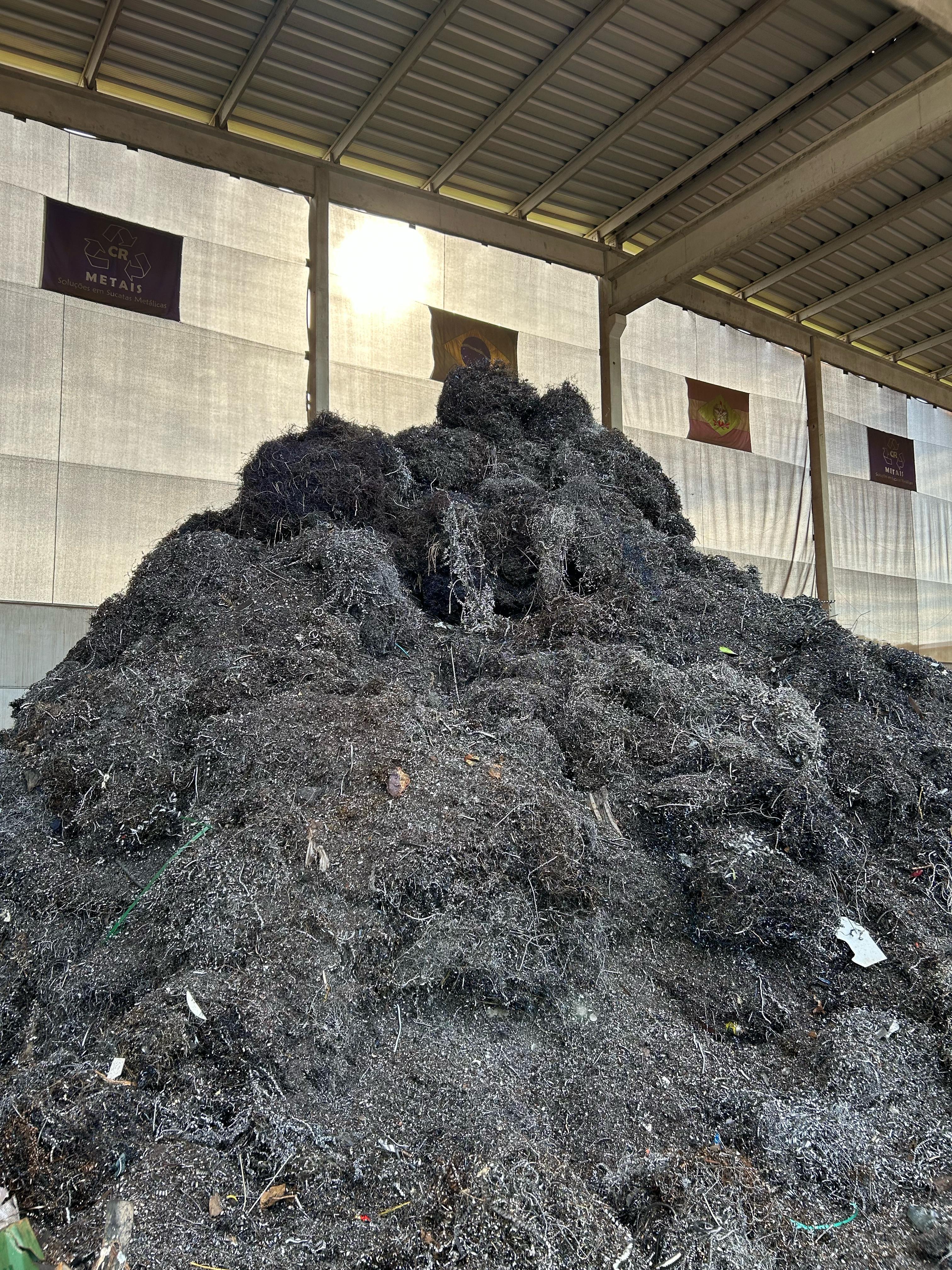 Material triturado e purificado para reaproveitamento industrial. Impurezas como borracha e vidro são removidas, resultando em sucata limpa e de alta qualidade.
