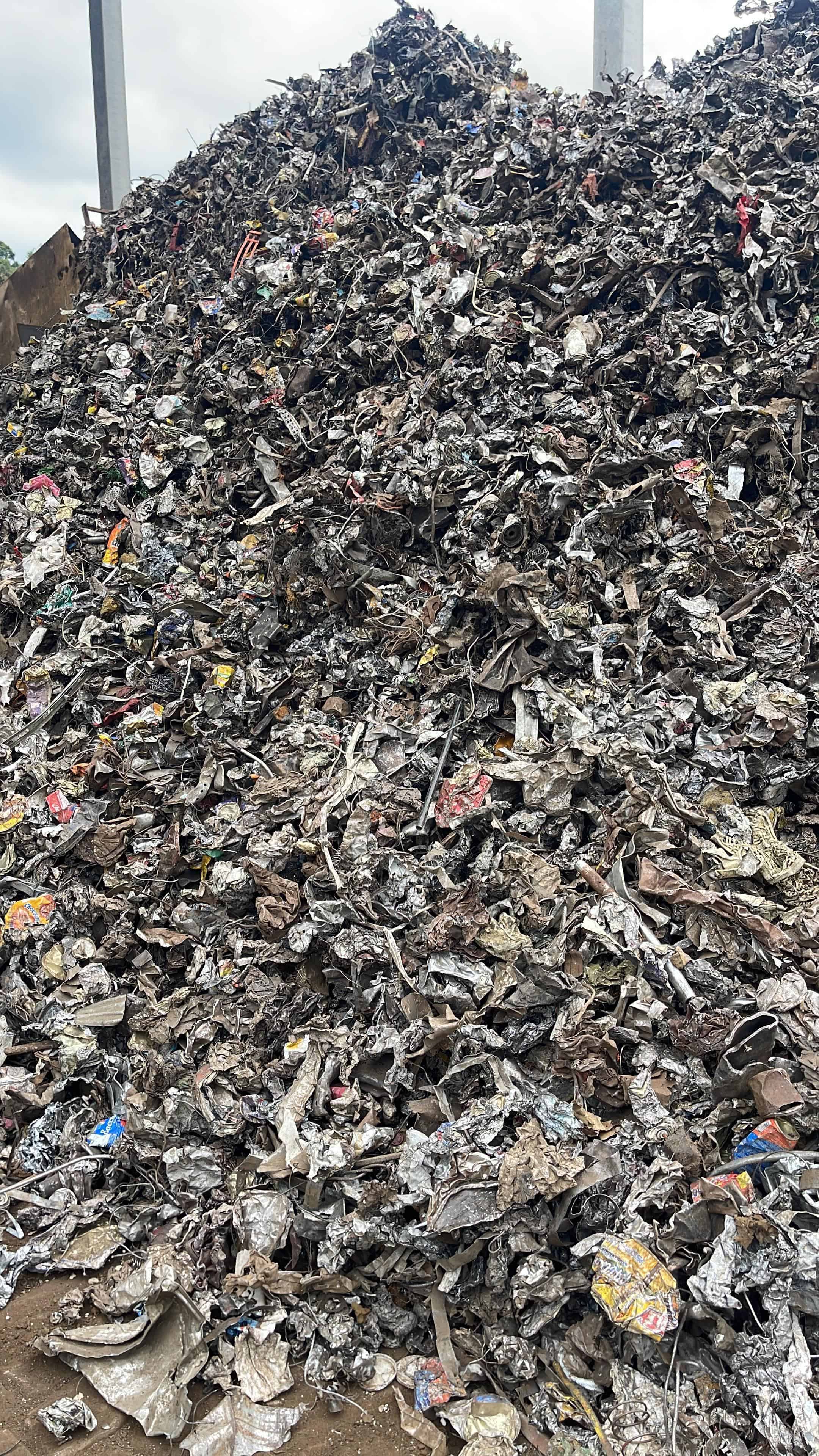 Material triturado e purificado para reaproveitamento industrial. Impurezas como borracha e vidro são removidas, resultando em sucata limpa e de alta qualidade.